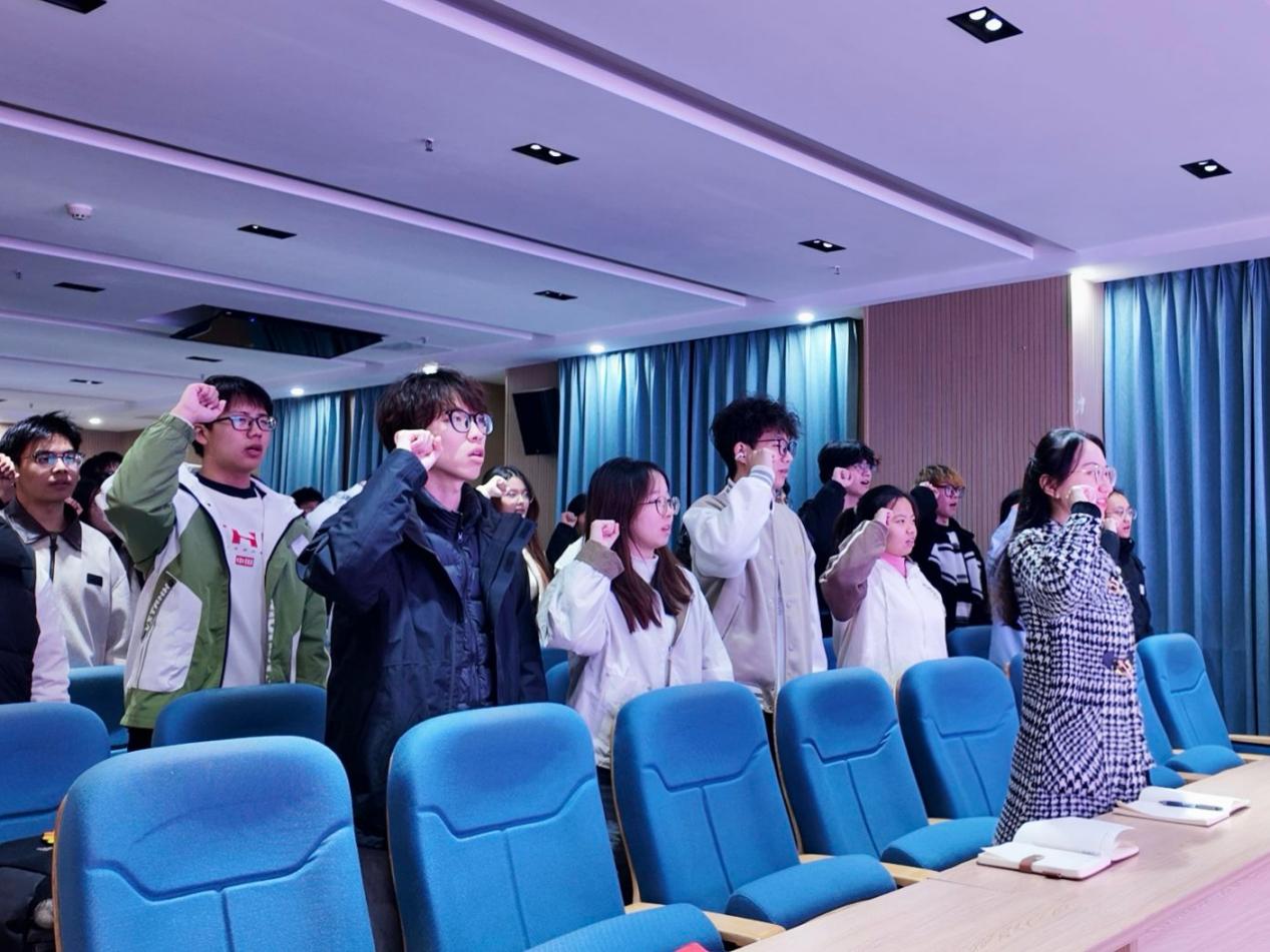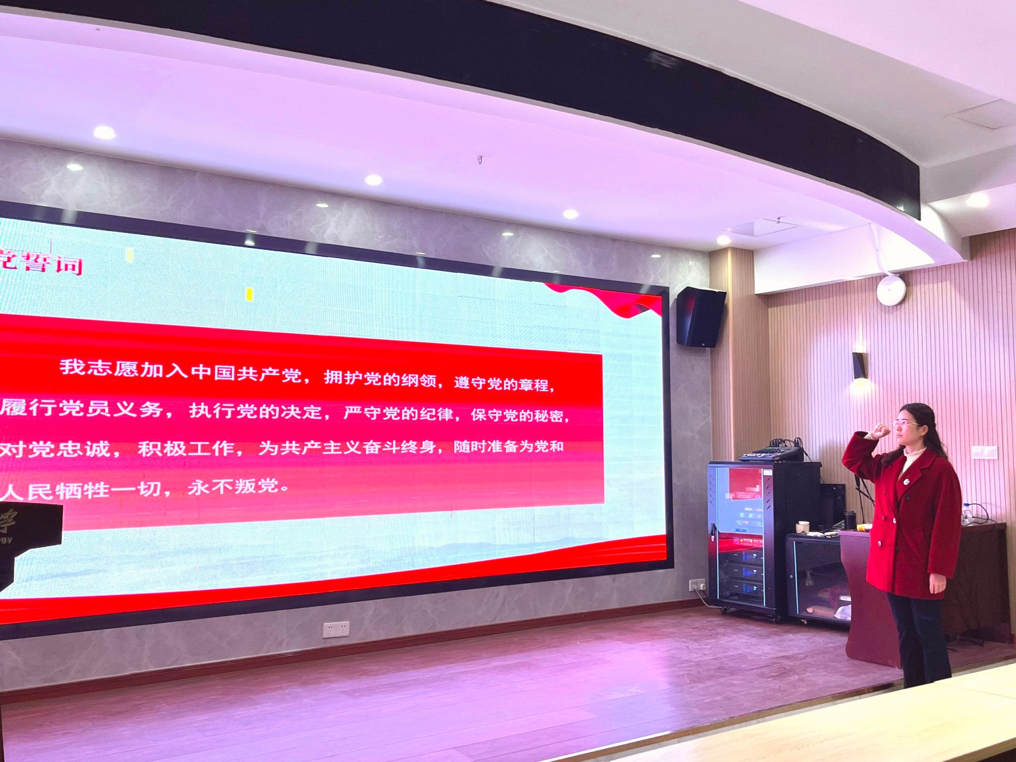 活动在全体人员齐唱国歌中拉开序幕,激昂的旋律凝聚起浓厚的爱国情怀与集体认同。随后,由本科化工专业第三党支部书记张锦老师领誓,全体党员面向党旗,重温入党誓词。铿锵誓言回荡在会场,进一步坚定了党员的初心使命与理想信念。