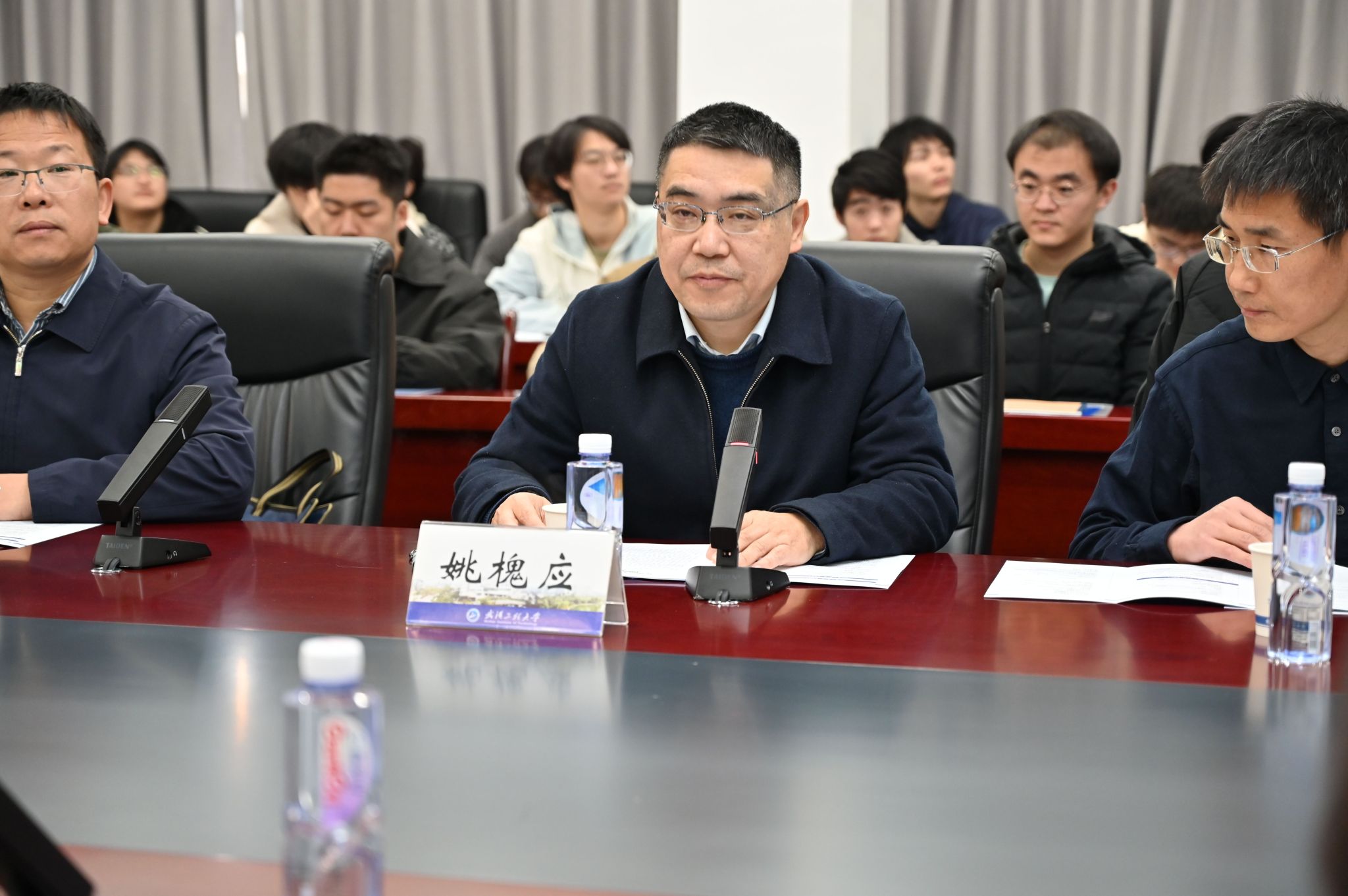 武汉工程大学副校长姚槐应代表学校向与会嘉宾致欢迎辞,介绍了学校的基本情况、光电信息与能源工程学院(数理学院)历史沿革和光学信息与模式识别湖北省重点实验室等科研平台,并对大会的顺利召开表达了美好祝愿。光电信息与能源工程学院、数理学院院长陈相柏教授主持会议,学院党政领导班子、教师代表及研究生参加了此次会议。
