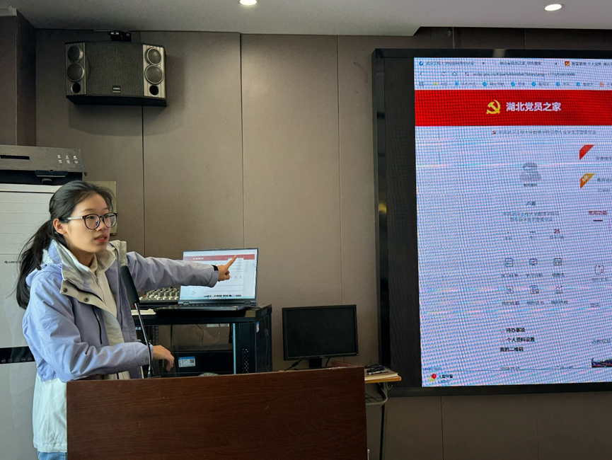 培训会上,卢青老师围绕“湖北党员之家”信息平台的操作使用进行了专题讲解。她从平台的功能架构、日常管理、数据维护等方面入手,详细演示了党员信息录入、组织关系转接、主题党日记录、学习资源查询等核心模块的操作流程,并结合实际案例强调了信息维护的规范性和时效性。卢老师还现场解答了同学们在平台使用中遇到的常见问题,帮助大家进一步掌握数字化工具,提升党务工作的智能化、精准化水平。
