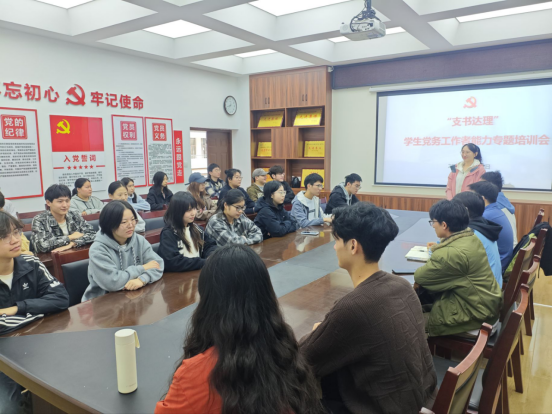 本网讯(通讯员 徐琲)为进一步加强基层党组织建设,提升学生党务工作者的理论水平和实务能力,10月31日,光能数理学院成功举办了第七期“支书达理”学生党务工作者能力提升专题培训会。学院2024级辅导员徐琲主持会议,各学生党支部负责人及“理学先锋”党务工作室全体成员共计50余人参加培训。