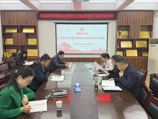 本网讯(通讯员 卢青)3月27日上午,光能数理学院在2实验楼206会议室举办树立和践行正确政绩观学习教育读书班,聚焦《习近平关于树立和践行正确政绩观论述摘编》开展集中学习研讨。学院党委副书记向翼凌主持学习,学院党委委员参加。