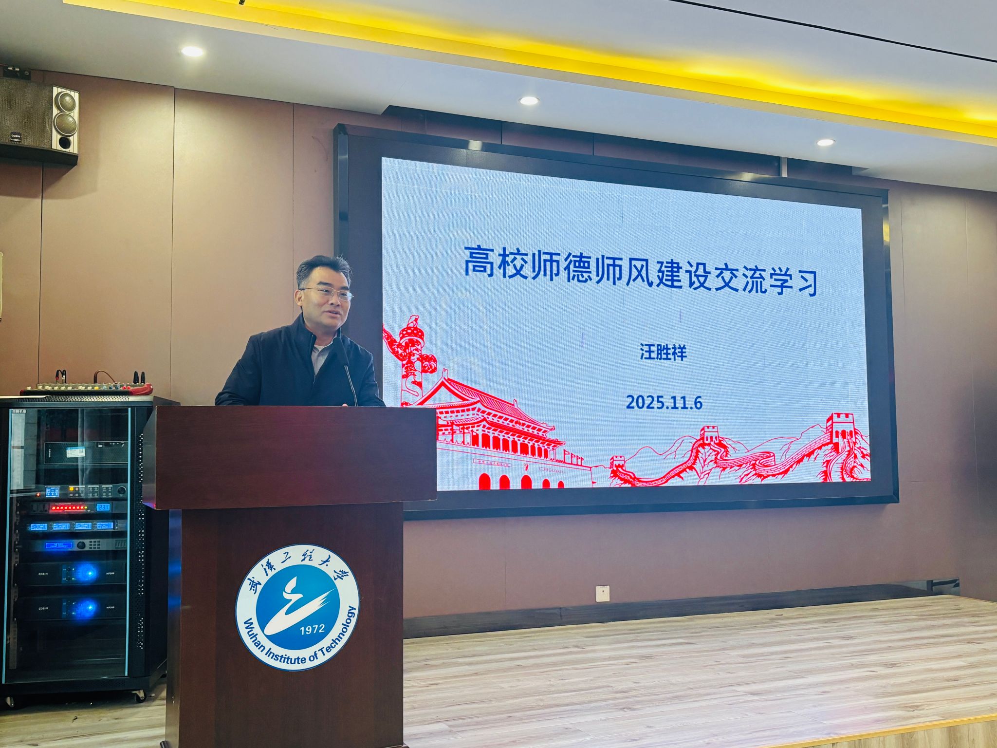 活动首先邀请武汉纺织大学研究生院院长汪胜祥作专题报告。汪教授以“高校师德师风建设交流学习”为主题,紧扣违反政治纪律、组织纪律、廉洁纪律、生活纪律、工作纪律五大维度,通过对“高校教师师德失范典型事例”的深入剖析,既精准点出当前师德建设中需警惕的潜在风险,更清晰勾勒出坚守师德底线、提升育人质效的实践路径与科学方法,内容深刻、发人深省,兼具鲜明的问题针对性与极强的实践指导价值。