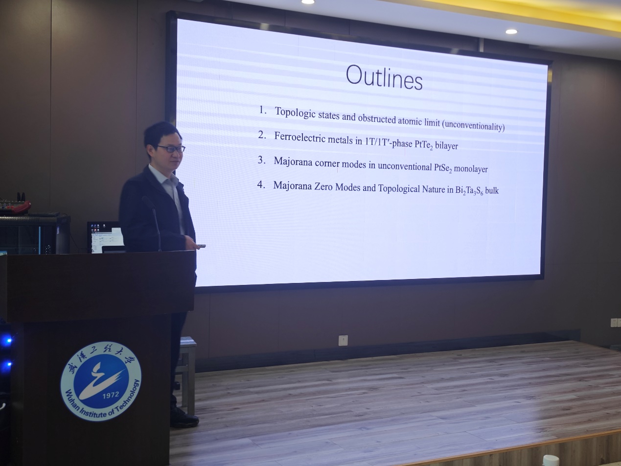 报告中,王老师分享了团队的三项研究成果:铁电金属的精准设计、非常规绝缘体中的角马约拉纳零能模,以及天然异质结中的微观马约拉纳铰链态。研究显示,由非中心对称单层构建的双层结构可形成新型“铁电金属”;WTe₂作为一种“对称性指标自由”的非常规绝缘体,其边缘态在超导和磁场作用下可产生“角马约拉纳零能模”;而Bi₂Te₃家族材料凭借天然量子阱结构及拓扑边缘态的巨大面内g因子各向异性,无需复杂微纳加工,便可在块体内部直接激发“微观马约拉纳铰链态”,为马约拉纳零能模的高维、稳定实现开辟了新