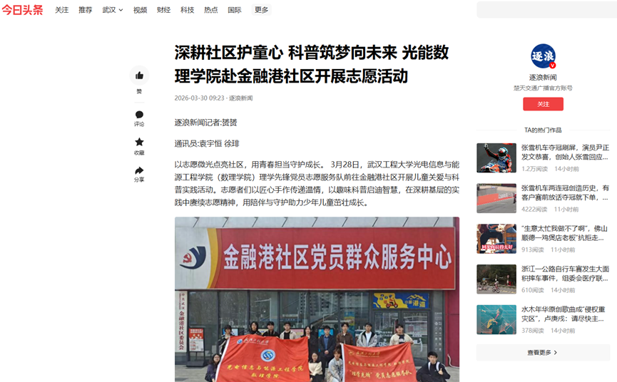 以志愿微光点亮社区,用青春担当守护成长。 3月28日,武汉工程大学光电信息与能源工程学院(数理学院)理学先锋党员志愿服务队前往金融港社区开展儿童关爱与科普实践活动。志愿者们以匠心手作传递温情,以趣味科普启迪智慧,在深耕基层的实践中赓续志愿精神,用陪伴与守护助力少年儿童茁壮成长。