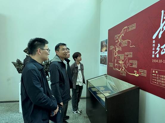 随后,全体人员前往湖北军民抗战博物馆前,面向党旗庄严伫立,在学生党员代表周唐带领下重温入党誓词,铿锵誓言彰显初心使命。宣誓结束后,马书记带领大家学习抗战历史,结合文物史料阐释革命精神的时代内涵,勉励全体党员铭记历史、传承英烈精神,将缅怀之情转化为奋进动力。