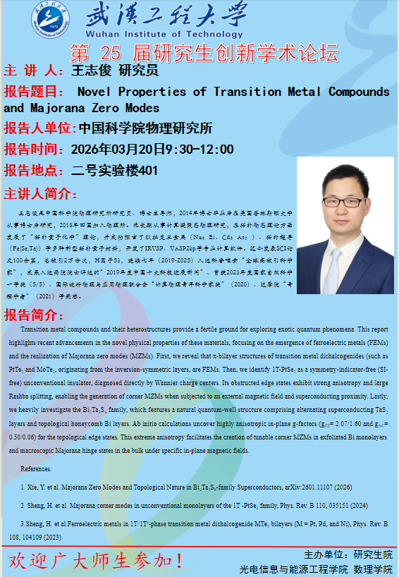 报告题目: Novel Properties of Transition Metal Compounds and Majorana Zero Modes